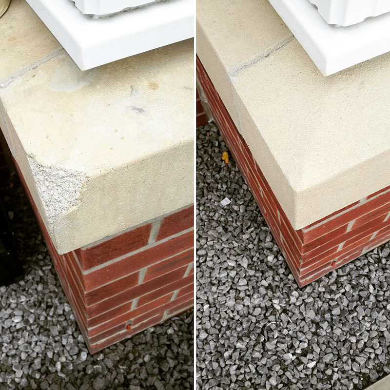 A recent stone sill repair to a plot at one of our clients new build homes in Bolton. This repair saved the site team from coordinating 3 different trades, ordering and waiting for a replacement and a lot of time and money!